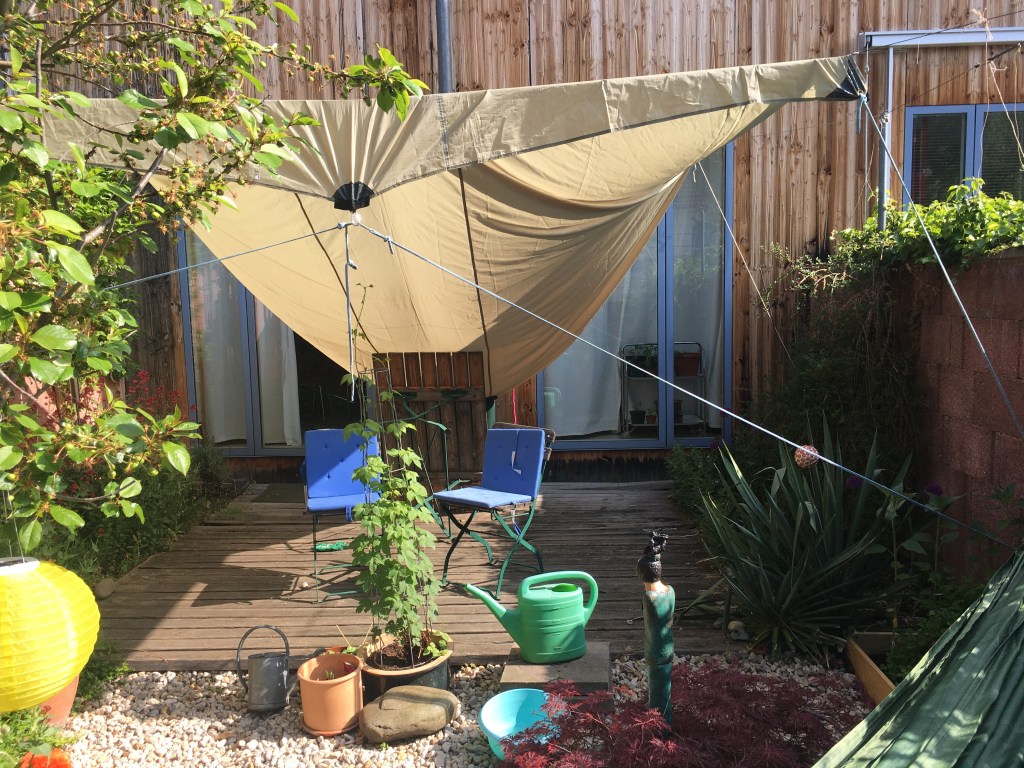 In diesem schönen Garten an dem schönen Haus haben wir schon einige Sommerfeste gefeiert. Leider werden die Bewohner in den nächsten Jahren wahrscheinlich Baustellenverkehr ertragen müssen. Bewohner der Straße im letzten Haus am Feldrand haben eine Bürgerinitiative gegen den Fruchtwechsel von Ackerland zu Bauland gegründet. Ein autofreies Wohngebiet mit Gärten und Bäumen sieht aus der Luft zumindest schön grün aus.
