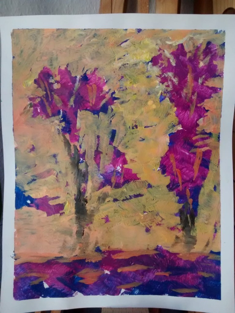 „Solange ich noch Farben habe, bin ich daheim gut aufgehoben.“ Sie schickt mir ein paar Bilder.