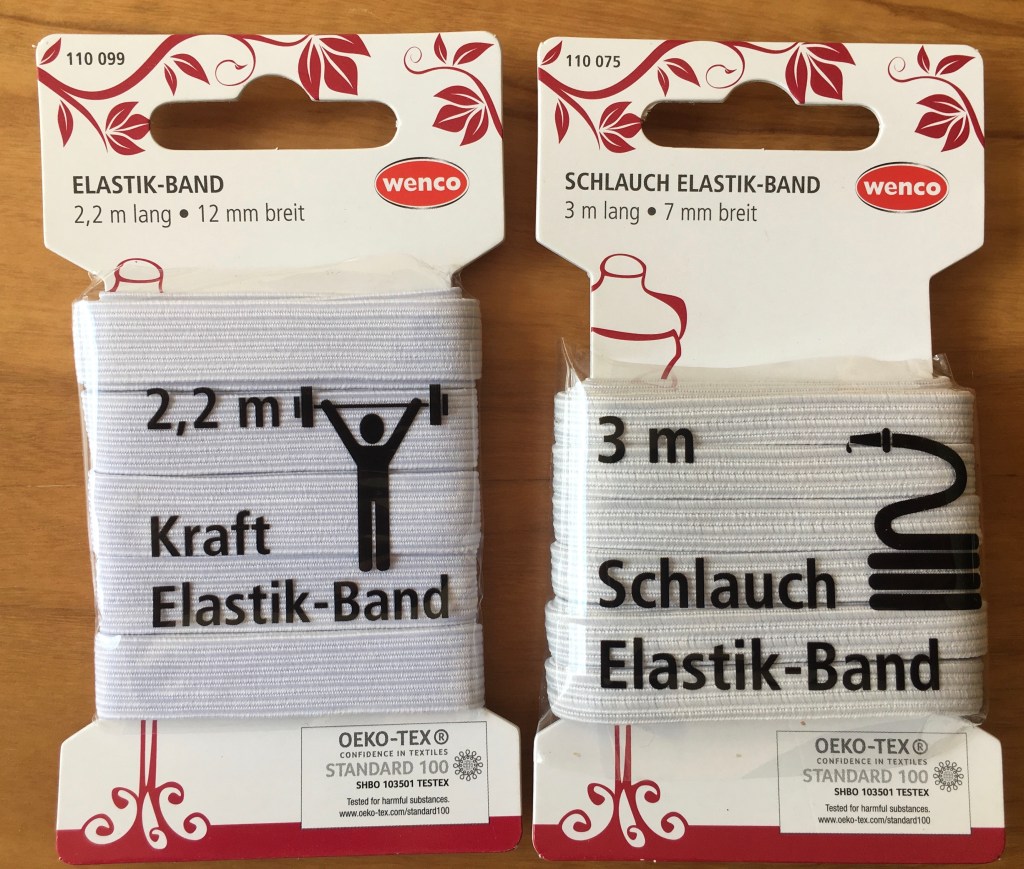 Gestern bei tegut habe ich die ersten Mitmenschen Ü60 mit OP-Mundschutz gesehen. Der junge Mann vor mir an der Kasse hat sich den Schal um den Mund gelegt und seine Freundin ungefähr im 6. Monat schwanger, hat sich ihr Tuch bis über die Nase gezogen. Ich muß mir schnellstmöglich einen Mundschutz besorgen. Vorerst habe ich mir auch mein Tuch von „kaseee“ einem meiner Lieblingslabel höher gezogen und mir von dem Kurzwarenstand neben mir noch ein Päckchen Schlauch Elastik-Band mitgenommen. Es ging nicht so richtig weiter, also hab ich mir auch noch 2,2 m Kraft-Elastik-Band mitgenommen.